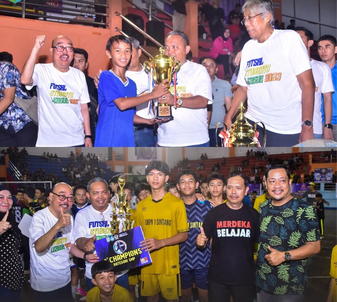 Bupati serta Didampingi Wabup Sintang Serahkan Piala juara Sekaligus Tutup Turnamen Futsal Student League 2023