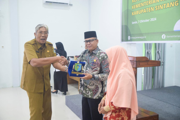 Bupati Sintang Jarot Winarno menghadiri pisah sambut Kepala Kantor Kementerian Agama (Kemenag) bertempat aula kantor kementerian agama Kabupaten Sintang, 6 Oktober 2024.