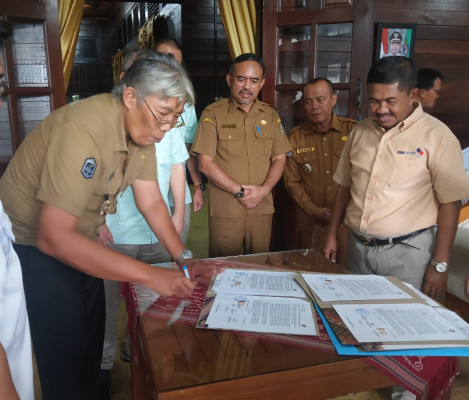 Sintang- Bupati Sintang bersama forkopimda yakni Dinas perdagangan dan koperasi (Disperindagkop dan Dinas Pertanian dan Perkebunan (Distanbun) melaksanan penandatanganan kerja sama bersama pihak perusahaan PT.Mitra Nusa Sarana. Di ruang tamu rumah jabatan bupati Sintang 14 Oktober 2024