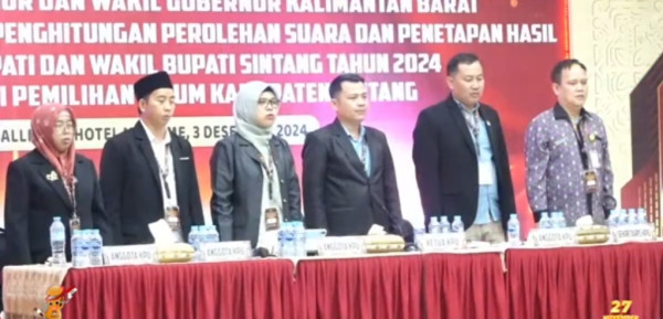 Komisi Pemilihan Umum (KPU) Kabupaten Sintang menggelar rapat pleno terbuka rekapitulasi hasil penghitungan suara tingkat kabupaten untuk Pemilihan Gubernur dan Wakil Gubernur Kalimantan Barat, serta Bupati dan Wakil Bupati Sintang Tahun 2024 di Hotel My Home Sintang, Selasa, 3 Desember 2024.