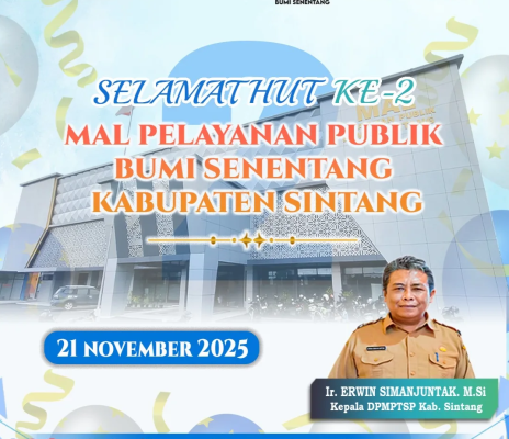 SINTANG -Mal Pelayanan Publik (MPP) Bumi Senentang Kabupaten Sintang merayakan Hari Ulang Tahun (HUT) ke-2 pada 21 November 2025. Perayaan ini menjadi momentum penting bagi Pemerintah Kabupaten Sintang untuk memperkuat transformasi layanan publik yang cepat, transparan, dan mudah dijangkau masyarakat.