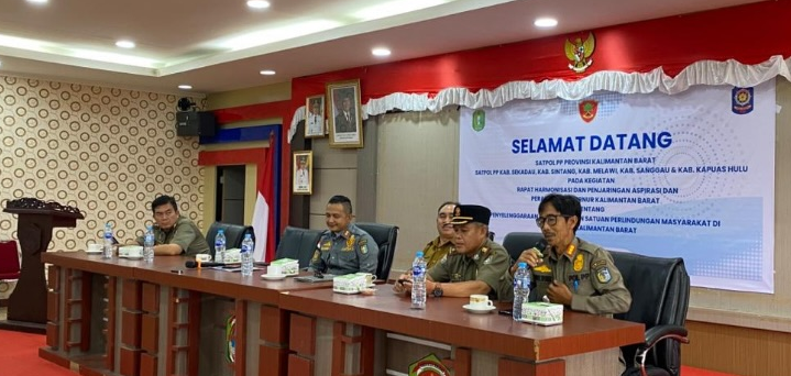 SINTANG – Jajaran Satuan Polisi Pamong Praja (Satpol PP) Kabupaten Sintang menghadiri rapat harmonisasi dan penjaringan aspirasi terkait rancangan Peraturan Gubernur Kalimantan Barat tentang penyelenggaraan pemberdayaan Satuan Perlindungan Masyarakat (Satlinmas), Selasa, 21 April 2026.