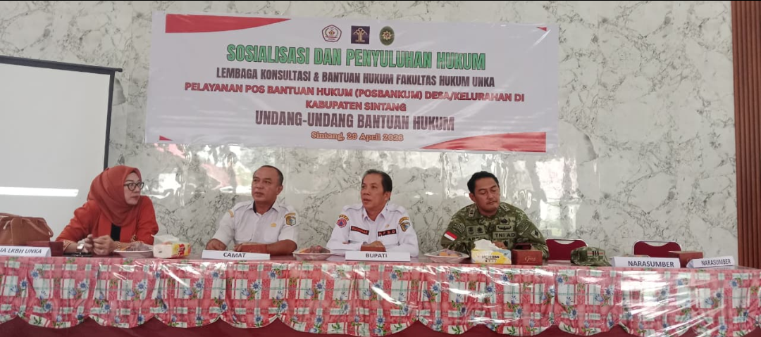 Sintang – Lembaga Konsultasi dan Bantuan Hukum (LKBH) Fakultas Hukum Universitas Kapuas (Unka) menggelar sosialisasi dan penyuluhan hukum terkait implementasi Undang-Undang Bantuan Hukum di Kabupaten Sintang, Selasa, 29 April 2026. Kegiatan ini menitikberatkan pada optimalisasi pelayanan Pos Bantuan Hukum (Posbakum) di tingkat desa dan kelurahan, dengan menghadirkan Kepala BPBD Kabupaten Sintang, Kusnidar, sebagai narasumber utama.
