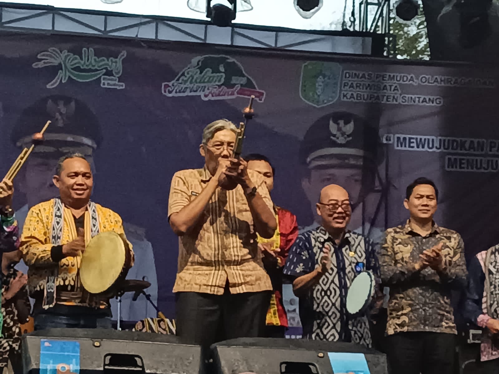 Sintang-Bupati Sintang Jarot Winarno membuka Kelam Tourism Festival Tahun 2023 di Panggung Utama yang ada di Halaman Indoor Apang Semangai pada Kamis, 26 Oktober 2023 sore. Pembukaan ditandai dengan ditiupnya alat musik tradisional Kabupaten Sintang yakni Keledik oleh Bupati Sintang.
